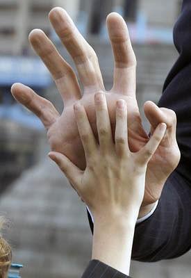РукопожатияПри первобытнообщинном строе зародился и обмен рукопожатиями. Когда встречались древние люди, они протягивали друг другу руки раскрытыми ладонями вперед для того, чтобы показать свою безоружность. Во время властного рукопожатия ваша рука захватывает руку другого человека таким образом, что ваша ладонь развернута вниз. Тем самым вы сообщаете ему, что хотите главенствовать в процессе общения с ним. Под наблюдением психологов находились 54 преуспевающих, высокопоставленных представителя административного звена. Исследования выявили, что 42 из них не только первыми протягивали руку, но и пользовались властным способом рукопожатия.